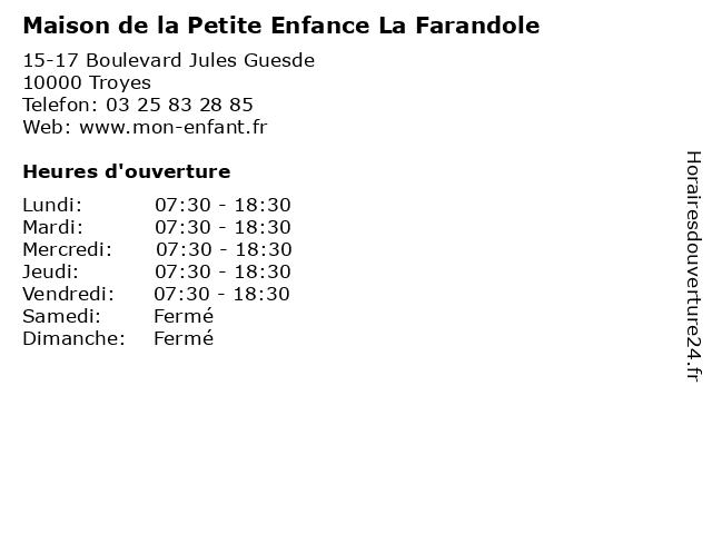 1 Maison de la Petite Enfance La Fontaine (Distance: 0,43 km) 14 Rue du Cloître Saint Etienne, 10000 Troyes caregivers houses, child care, de, enfance, family home, fontaine, home care, kindergartens, la, maison, micro-nurseries, parental home, petite 2 Maison de la Petite Enfance Louis Ulbach (Distance: 0,57 km) 26 Rue Louis Ulbach, 10000 Troyes caregivers houses, child care, de, enfance, family home, home care, kindergartens, la, louis, maison, micro-nurseries, parental home, petite, ulbach 3 Maison de la Petite Enfance Galipettes (Distance: 0,69 km) 12 Rue des Sénardes, 10000 Troyes caregivers houses, child care, de, enfance, family home, galipettes, home care, kindergartens, la, maison, micro-nurseries, parental home, petite 4 Maison de la Petite Enfance Galipettes - accueil parents/enfants (Distance: 0,69 km) 12 Rue des Sénardes, 10000 Troyes accueil, caregivers houses, child care, de, enfance, family home, galipettes, home care, kindergartens, la, maison, micro-nurseries, parental home, parents/enfants, petite 5 Maison de la Petite Enfance Les Halles (Distance: 0,83 km) , du marché, 10000 Troyes caregivers houses, child care, de, enfance, family home, halles, home care, kindergartens, la, les, maison, micro-nurseries, parental home, petite 6 Maison de la Petite Enfance du Parc (Distance: 1,28 km) 25 C Rue du Parc des Sports, 10000 Troyes caregivers houses, child care, de, du, enfance, family home, home care, kindergartens, la, maison, micro-nurseries, parc, parental home, petite |