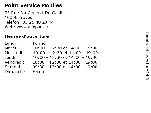 | Mardi | 10:00-12:30 et 14:00-19:00 |