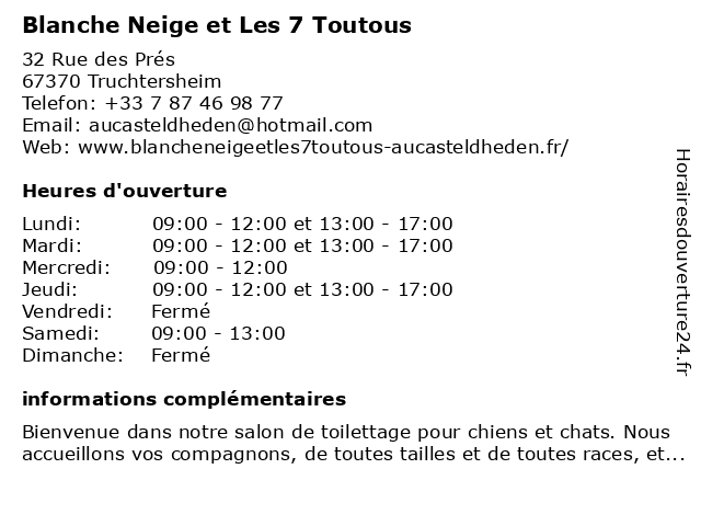 | Mardi | 09:00-12:00 et 13:00-17:00 |
