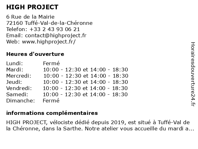 Samedi | 10:00-12:30 et 14:00-18:30 |