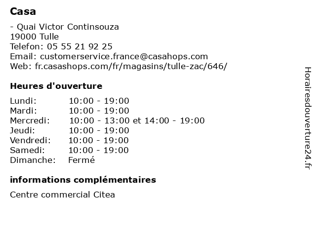 | Mercredi | 10:00-13:00 et 14:00-19:00 |