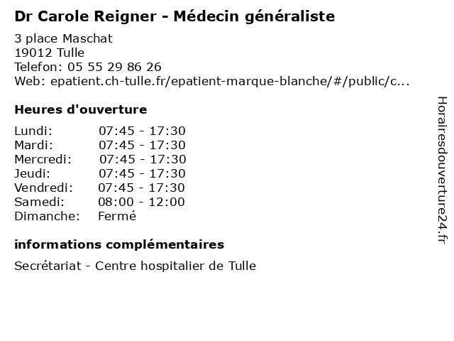 | Mercredi | 07:45-17:30 |