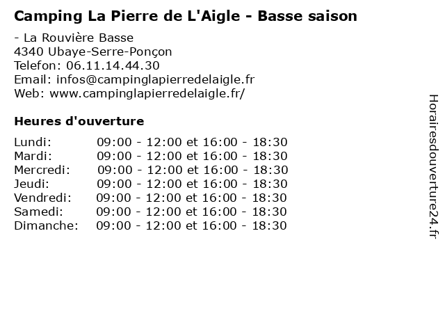 | Dimanche | 09:00-12:00 et 16:00-18:30 |