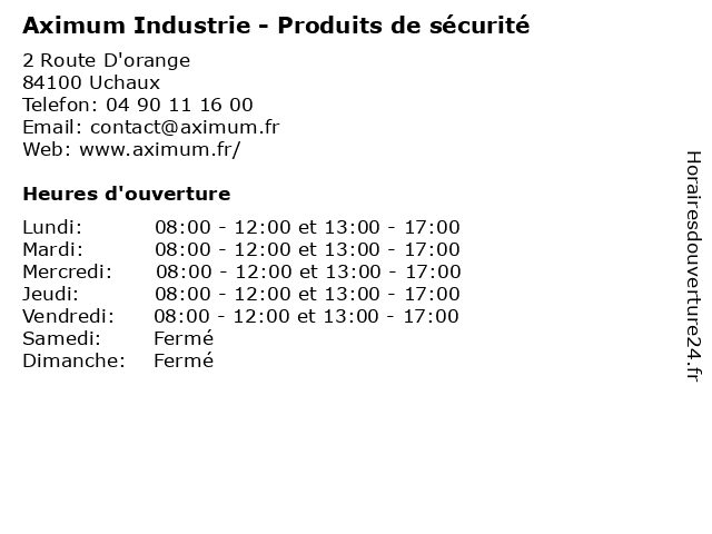 | Lundi | 08:00-12:00 et 13:00-17:00 |