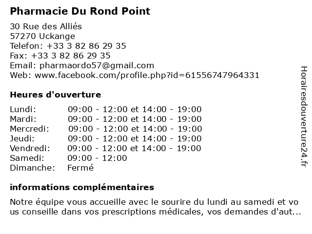 | Lundi | 09:00-12:00 et 14:00-19:00 |