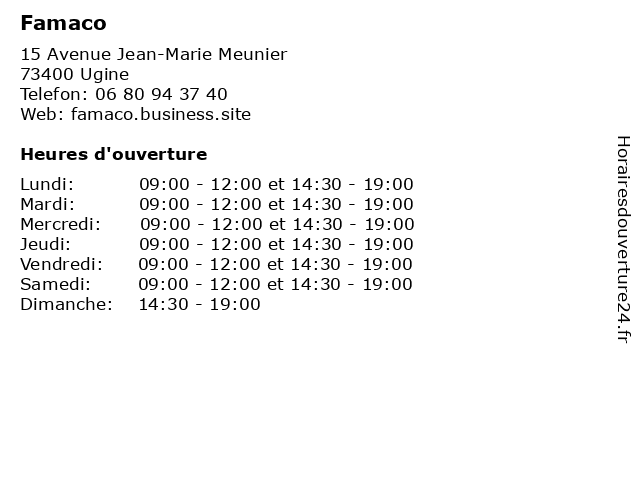 Lundi | 09:00-12:00 et 14:30-19:00 |