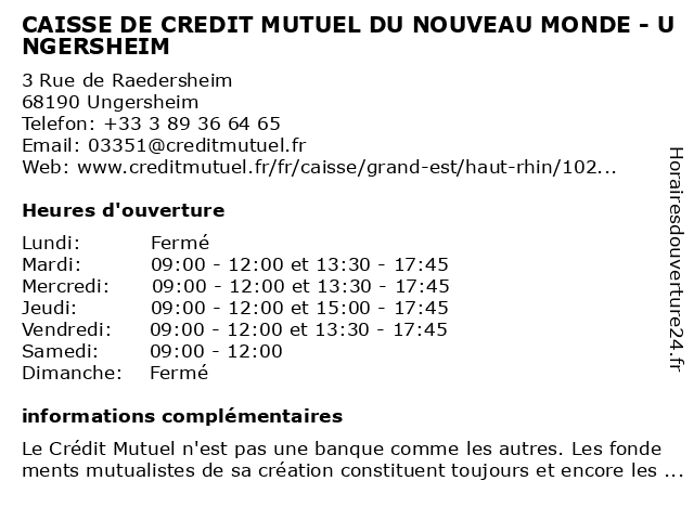 Termes de recherche pour CAISSE DE CREDIT MUTUEL DU NOUVEAU MONDE - UNGERSHEIM:du, de, nouveau, ungersheim, crédit, monde, mutuel, caisse |