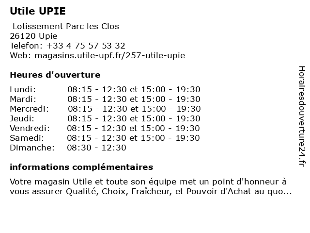 | Mardi | 08:15-12:30 et 15:00-19:30 |