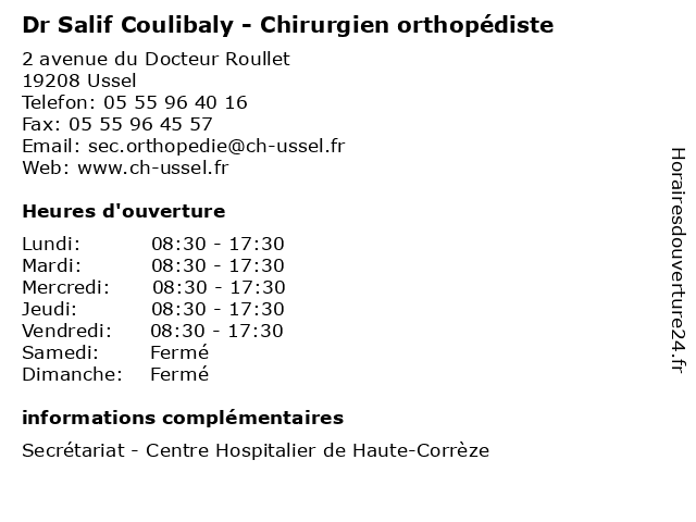 Termes de recherche pour Dr Salif Coulibaly - Chirurgien orthopédiste:de, ussel, centre, orthopedie, haute, corrèze, hospitalier, orthopédique, dr, chirurgien, orthopédiste, traumatologie, traumatologique, coulibaly, salif, trauma |
