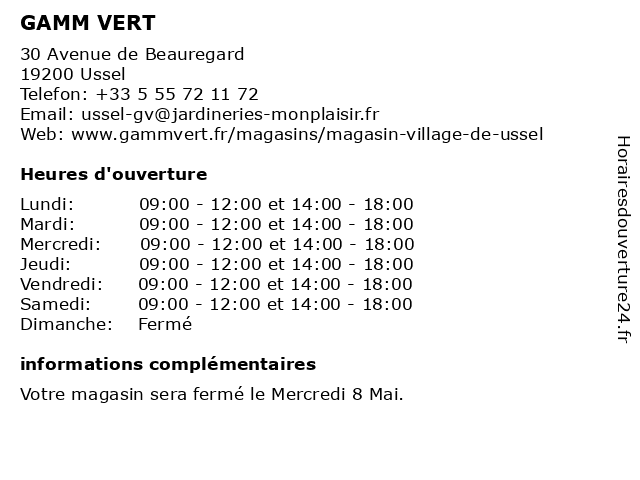 | Mardi | 09:00-12:00 et 14:00-18:00 |