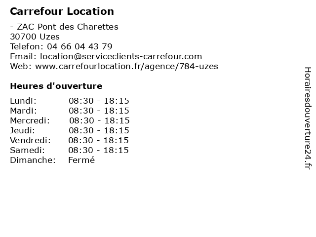 | 1 Carrefour Location (Distance: 12,49 km) - Impasse de l’Arnède Haute, 30210 Remoulins agence, carrefour, location, utilitaires, véhicules 2 Carrefour Location (Distance: 19,37 km) 1755 Avenue Pierre Mendes France, 30000 Nimes automobiles, carrefour, déménagements, location, véhicules 3 Carrefour Location (Distance: 19,82 km) 120 Galerie Marcel Sant Boulevard Kennedy, 30900 Nîmes agence, carrefour, location, utilitaires, véhicules 4 Carrefour (Distance: 0,00 km) . zac Pont des Charrettes, 30700 Uzès carrefour, hypermarche, marche, market 5 Carrefour Station Service (Distance: 0,29 km) . Pont des Charrettes, 30700 Uzes automobiles, carrefour, oil, service, services, station, stations essences 6 Carrefour Contact Marché (Distance: 17,92 km) - Rue de l'Occitanie, 30000 Nimes carrefour, contact, marché, matériel de jardin, meubles, électroménager, étagères autres offres: |