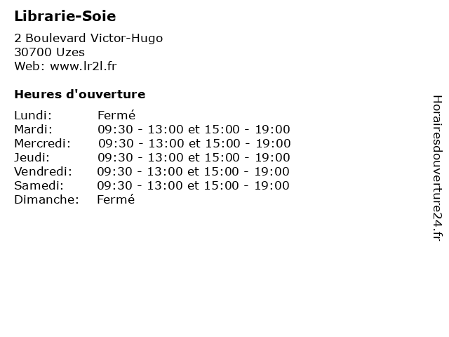 | Samedi | 09:30-13:00 et 15:00-19:00 |