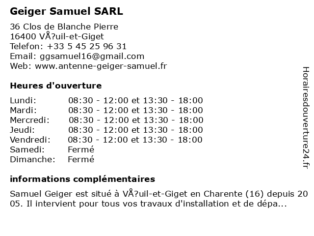| Lundi | 08:30-12:00 et 13:30-18:00 |
