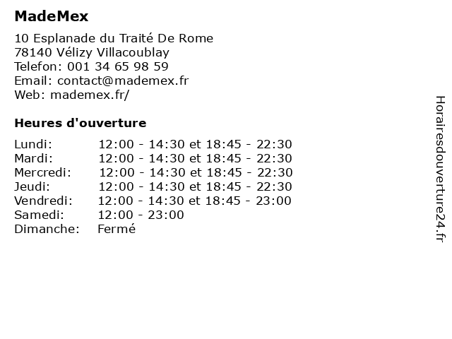 | Mardi | 12:00-14:30 et 18:45-22:30 |