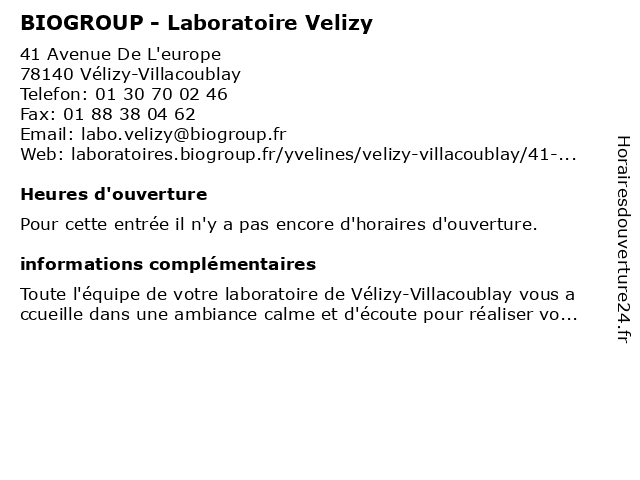 | Appeler BIOGROUP - Laboratoire Velizy | |