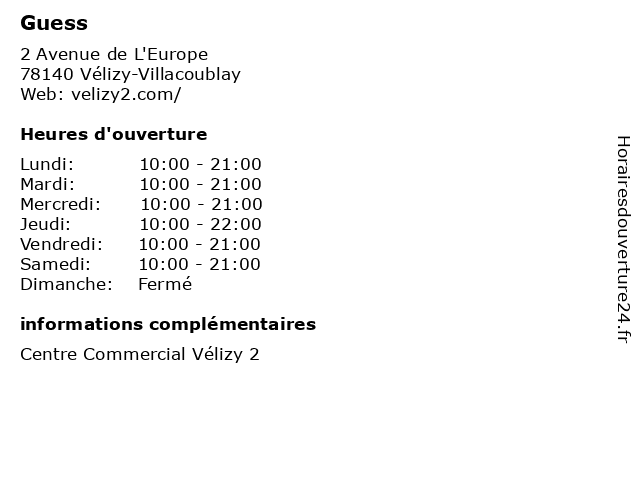 Termes de recherche pour Guess:commercial, centre, guess, velizy, villacoublay |