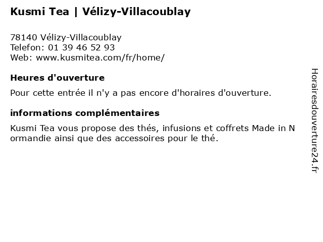 | Appeler Kusmi Tea | Vélizy-Villacoublay | |