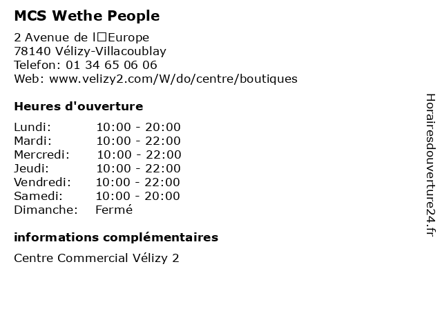| Mercredi | 10:00-22:00 |
