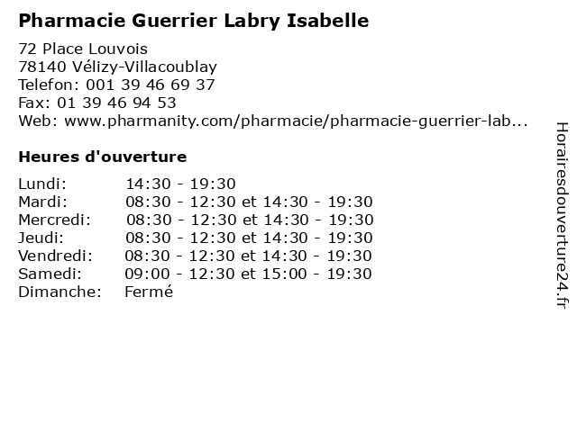 | Mardi | 08:30-12:30 et 14:30-19:30 |