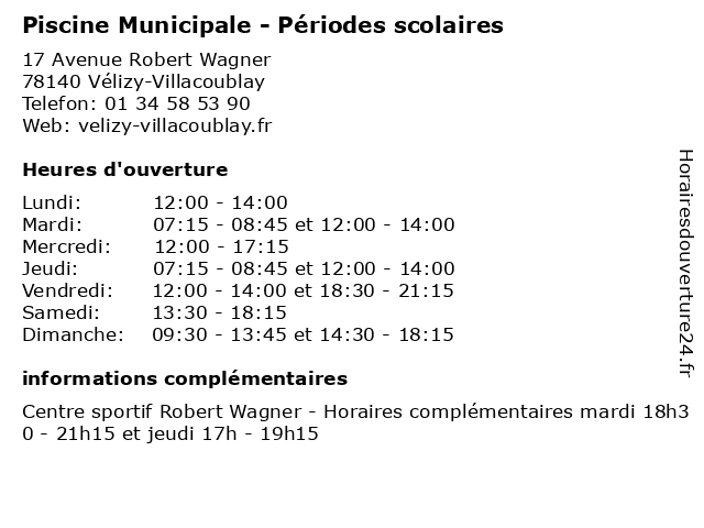 1 Piscine Municipale - Vacances scolaires (Distance: 0,00 km) 17 Avenue Robert Wagner, 78140 Vélizy-Villacoublay activité, bassins, famille, municipale, natation, piscine, scolaire, scolaires, sport, vacances 2 A la Reine Astrid - Hors vacances scolaires (Distance: 2,26 km) 76 Avenue Général Leclerc, 78220 Viroflay artisan, astrid, chocolatier, hors, la, reine, scolaires, vacances 3 A la Reine Astrid - Vacances scolaires (Distance: 2,26 km) 76 Avenue Général Leclerc, 78220 Viroflay artisan, astrid, chocolatier, la, reine, scolaires, vacances 4 Centre Régional des œuvres Universitaires et Scolaires (Distance: 3,82 km) 145 Boulevard de la Reine, 78005 Versailles administration, assoc, centre, des, et, régional, scolaires, services, services publics, universitaires, œuvres 5 Patinoire de Meudon - Périodes scolaires (Distance: 4,08 km) 13 Avenue de Villacoublay, 92360 Meudon-la-Forêt activités, de, famille, glisse, meudon, patinoire, patins, périodes, scolaires, sport 6 Patinoire de Meudon - Vacances scolaires (Distance: 4,08 km) 13 Avenue de Villacoublay, 92360 Meudon-la-Forêt activités, de, famille, glisse, meudon, patinoire, patins, scolaires, sport, vacances |