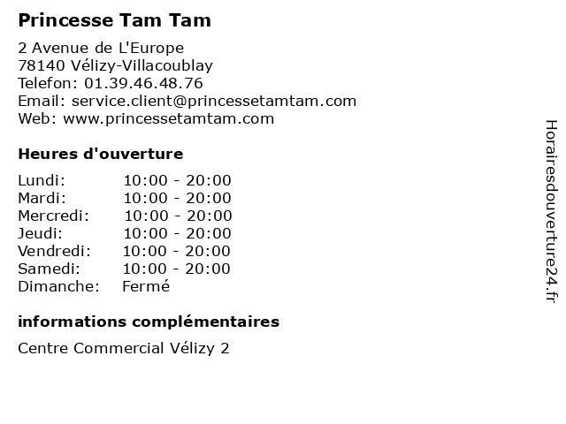 1 Princesse Tam Tam (Distance: 6,47 km) 114ter Avenue Jean Jaurès, 92100 Boulogne-Billancourt femme, lingerie, princesse, tam, tamtam 2 Princesse Tam Tam (Distance: 7,26 km) 41 Rue De La Paroisse, 78000 Versailles femme, lingerie, princesse, tam, tamtam 3 Princesse Tam Tam (Distance: 9,18 km) . Avenue Charles de Gaulle, 78158 Le Chesnay beaute, cafe, chaussures, enfants, lingerie, mode femmes, mode hommes, princesse, restaurant, sport, tam 4 Princesse Tam Tam (Distance: 10,27 km) 22 Rue Du Depart, 75015 Paris gorge - boxers, lingerie féminine, princesse, soutiens, tam 5 Princesse Tam Tam (Distance: 10,80 km) 109 Avenue Victor Hugo, 75116 Paris féminine, gorge - boxers, lingerie, princesse, soutiens, tam 6 Princesse Tam Tam (Distance: 10,93 km) 24 Rue de Sèvres, 75007 Paris féminine, gorge-boxers, lingerie, princesse, soutiens, tam |