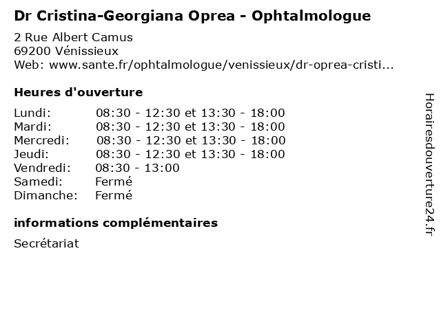 | Lundi | 08:30-12:30 et 13:30-18:00 |