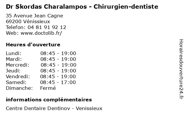 1 Dr Claudia Grota - Chirurgien-dentiste (Distance: 0,00 km) 35 Avenue Jean Cagne, 69200 Vénissieux chirurgien, claudia, dentiste, dr, grota, médecin, médecine, médical, pharmaceutique, traitement 2 Dr Kalia Hadjisavva - Chirurgien-dentiste (Distance: 0,00 km) 35 Avenue Jean Cagne, 69200 Vénissieux chirurgien, dentiste, dr, hadjisavva, kalia, médecin, médecine, médical, pharmaceutique, traitement 3 Dr Tiago Moreira - Chirurgien-dentiste (Distance: 0,00 km) 35 Avenue Jean Cagne, 69200 Vénissieux chirurgien, dentiste, dr, moreira, médecin, médecine, médical, pharmaceutique, tiago, traitement 4 Dr Caroline Bonnel Maillot - Médecin généraliste (Distance: 5,05 km) 33 Rue Maréchal Leclerc, 69800 Saint-Priest bonnel, caroline, dr, généraliste, maillot, médecin, médecine, médical, pharmaceutique, traitement 5 Bibliothèque Centre de Documentation -Département Pharmaceutique de Santé Publique (Distance: 5,16 km) 8 Avenue Rockefeller, 69373 Lyon bibliothèque, centre, de, documentation, département, librarie, médiathèque, pharmaceutique, publique, santé, services, université 6 Dr Jean-Paul Veron - Médecin généraliste (Distance: 5,58 km) 105 Cours Albert Thomas, 69003 Lyon dr, généraliste, jean, médecin, médecine, médical, paul, pharmaceutique, traitement, veron |
