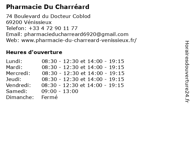 | Lundi | 08:30-12:30 et 14:00-19:15 |