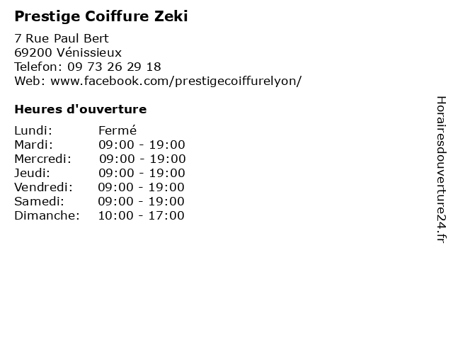 | Lundi | Fermé |