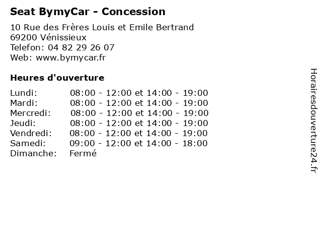 | Lundi | 08:00-12:00 et 14:00-19:00 |