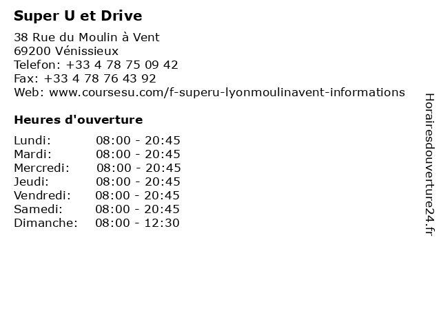 5 Super U Location (Distance: 0,00 km) 38 rue du Moulin à Vent, 69200 Vénissieux location, super, transport, utilitaire, véhicule 6 |