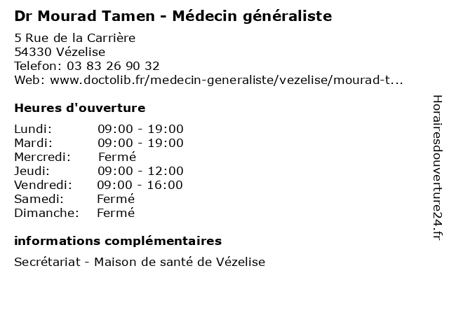 1 Dr Mourad Bichiki - Médecin généraliste (Distance: 23,49 km) 10 Rue Victor Poirel, 54000 Nancy bichiki, docteur, dr, generaliste, généraliste, medecin, mourad, médecin, soins 2 Dr Mourad Ben Bader - Chirurgien viscéral et digestif (Distance: 25,61 km) 1 Cours Raymond Poincaré, 54200 Toul bader, ben, chirurgien, consultation, digestif, docteur, dr, et, med, mourad, médecin, traitement, viscéral 3 Dr Lucile Ast - Médecin généraliste (Distance: 0,00 km) 5 Rue de la Carrière, 54330 Vézelise ast, docteur, dr, generaliste, généraliste, lucile, medical, médecin, soin 4 Dr Muriel Bagnon - Médecin généraliste (Distance: 7,20 km) 5 Rue du Général Leclerc, 54160 Pulligny bagnon, docteur, dr, generaliste, généraliste, medical, muriel, médecin, soin 5 Dr Laurence Bagnon - Médecin généraliste (Distance: 7,20 km) 5 Rue du Général Leclerc, 54160 Pulligny bagnon, docteur, dr, generaliste, généraliste, laurence, medical, médecin, soin 6 Dr Rémi Brochot - Médecin généraliste (Distance: 13,21 km) 14 Place Roger Salengro, 54550 Pont-Saint-Vincent brochot, docteur, dr, generaliste, généraliste, medical, médecin, rémi, soin |