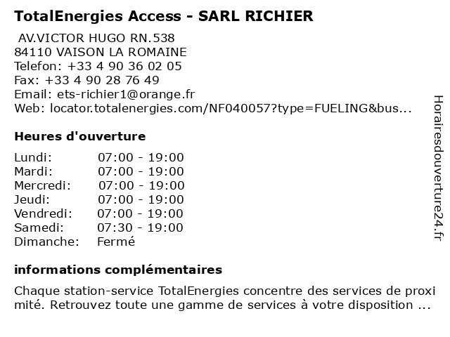 Termes de recherche pour TotalEnergies Access - SARL RICHIER:access, sarl, total, gas station, richier, station service, tankstelle, totalenergies |