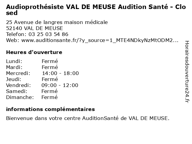 Termes de recherche pour Audioprothésiste VAL DE MEUSE Audition Santé - Closed:val, de, meuse, santé, audition, audioprothésiste, closed, audiologie |