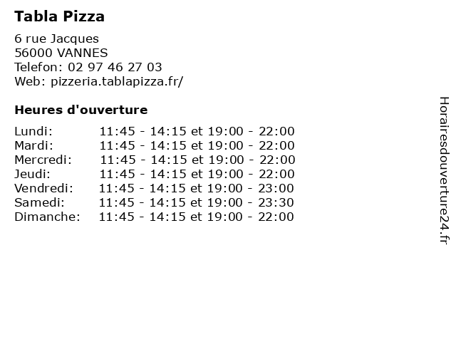 | Mardi | 11:45-14:15 et 19:00-22:00 |