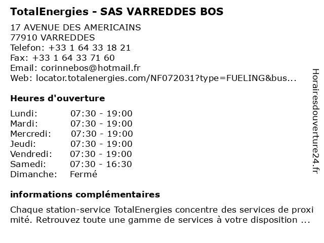 Termes de recherche pour TotalEnergies - SAS VARREDDES BOS:sas, total, varreddes, gas station, bos, station service, tankstelle, totalenergies |
