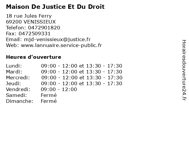 1 Maison de Justice et du Droit (Distance: 4,07 km) 32 avenue Jean Mermoz, 69008 Lyon administration, assoc, de, droit, du, et, justice, maison, services, services publics 2 Maison de Justice et du Droit (Distance: 4,18 km) 3-5 Rrue Carnot, 69500 Bron administration, assoc, de, droit, du, et, justice, maison, services, services publics 3 Maison de Justice et du Droit (Distance: 7,49 km) 52 rue Racine, 69100 Villeurbanne administration, assoc, de, droit, du, et, justice, maison, services, services publics 4 Maison de Justice et du Droit (Distance: 9,16 km) 27-29 rue Condorcet, 69120 Vaulx-en-Velin administration, assoc, de, droit, du, et, justice, maison, services, services publics 5 Maison de justice et du droit (Distance: 10,32 km) 1 rue du Chapeau-Rouge, 69009 Lyon accès aux droits, aide, conciliation, de, droit, du, et, justice, maison, mediation, prevention 6 Me Marlène Bontemps - Huissier de Justice (Distance: 4,92 km) 75 ter Rue Roger Salengro, 69310 Pierre-Bénite bontemps, de, huissier, justice, marlène, marléne, me |