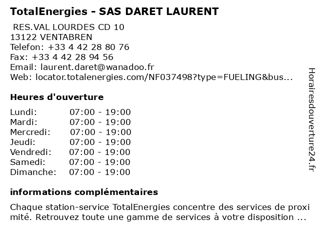 Termes de recherche pour TotalEnergies - SAS DARET LAURENT:laurent, sas, total, gas station, station service, daret, tankstelle, totalenergies |