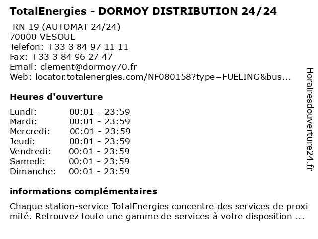 Termes de recherche pour TotalEnergies - DORMOY DISTRIBUTION 24/24:total, dormoy, distribution, 24/24, gas station, station service, tankstelle, totalenergies |