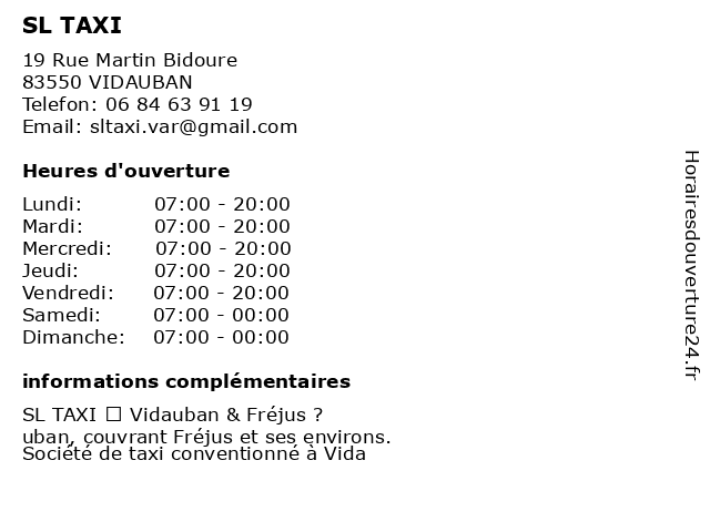 | Vendredi | 07:00-20:00 |