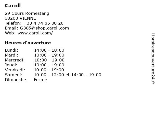 | Samedi | 10:00-12:00 et 14:00-19:00 |