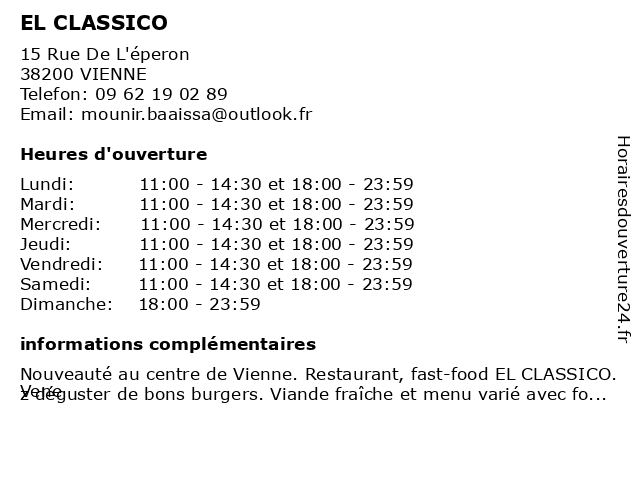 | Samedi | 11:00-14:30 et 18:00-23:59 |