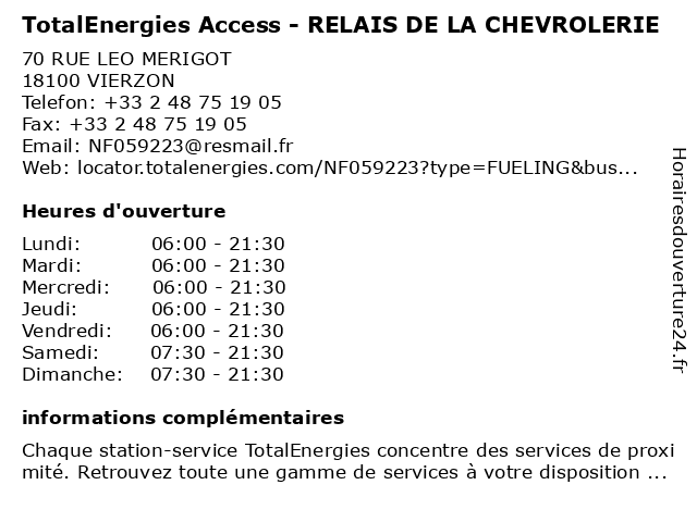 Termes de recherche pour TotalEnergies Access - RELAIS DE LA CHEVROLERIE:relais, la, de, access, total, gas station, station service, tankstelle, totalenergies, chevrolerie |