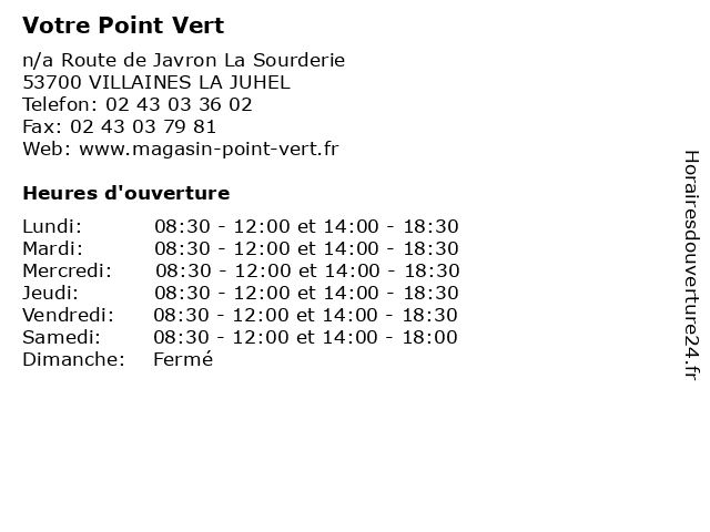 | Lundi | 08:30-12:00 et 14:00-18:30 |