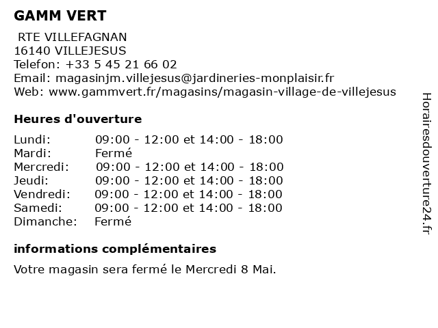 1 GAMM VERT (Distance: 11,56 km) Les Champs Bouyers, 16230 Mansle animalerie, gamm, jardin, jardinerie, mobilier de jardin, plantes, pépinière, vert 2 Gamm Vert (Distance: 12,60 km) - Route Villefagnan, 16140 Villejesus animalerie, gamm, jardinerie, vert 3 GAMM VERT (Distance: 16,02 km) Le Lantillon, 16170 Rouillac animalerie, gamm, jardin, jardinerie, mobilier de jardin, plantes, pépinière, vert 4 Point Vert (Distance: 14,65 km) . ZA la Gagnerie, 16330 Saint-Amant-de-Boixe animalerie, bricolage, jardinage, magasin, point, pépinière, vert 6 |