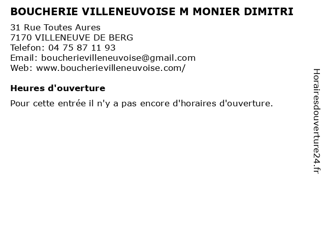 | Appeler BOUCHERIE VILLENEUVOISE M MONIER DIMITRI | |