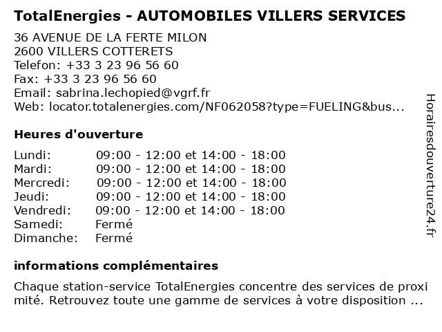 Termes de recherche pour TotalEnergies - AUTOMOBILES VILLERS SERVICES:villers, automobiles, services, total, gas station, station service, tankstelle, totalenergies |