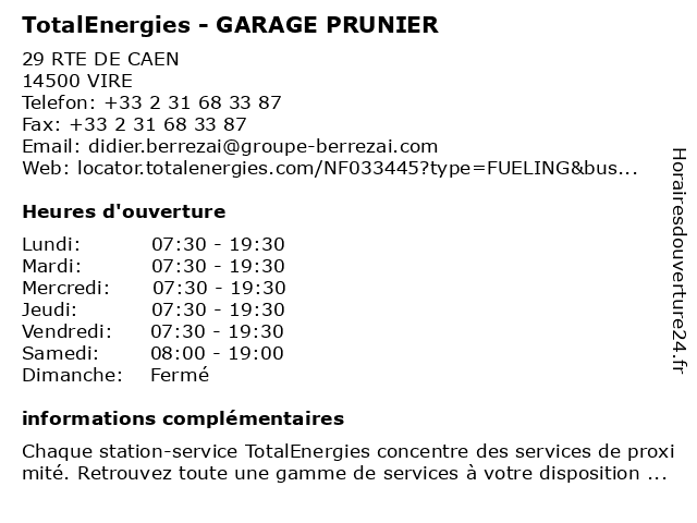 1 Garage Prunier - Citroën (Distance: 0,03 km) 29 Route de Caen, 14500 Viré accessoires, automobile, carrosserie, citroën, entretien, garage, pièces, prunier, réparation, vente, vidange 2 Garage Prunier - Citroën (Distance: 0,03 km) 29 Route de Caen, 14500 Vire atelier, automobile, citroën, concessionnaire, garage, neuve, occasion, prunier, réparation, vente 3 Station-Service TotalEnergies (Distance: 11,04 km) n/a Rue de la liberté, 14350 Montchamp carburant, essence, pompes, service, station, totalenergies, véhicules 4 Simpois Prunier Genevieve (Distance: 11,45 km) Ld Les Maures, 50150 Chaulieu genevieve, prunier, restaurants, simpois 5 Ets Serge Prunier (Distance: 14,43 km) - Les Plantes, 61800 Tinchebray Bocage ets, ets serge prunier, machines agricoles, prunier, serge, services, vente 6 TotalEnergies - SAS GARAGE MARTINS (Distance: 14,55 km) 3 ROUTE DE CAEN - PONT FARCY, 50420 TESSY-BOCAGE garage, gas station, martins, sas, station service, tankstelle, total, totalenergies |