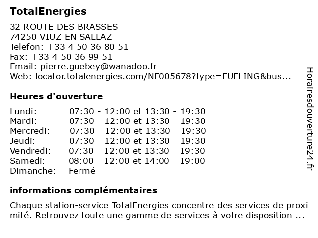 1 TotalEnergies - SAS DUBOUCHET (Distance: 11,07 km) 161 AVENUE DE LA LIBERATION, 74800 LA ROCHE SUR FORON dubouchet, gas station, sas, station service, tankstelle, total, totalenergies 2 TotalEnergies - RELAIS LES VOIRONS (Distance: 12,62 km) 81 ROUTE DE THONON, 74100 ANNEMASSE gas station, les, relais, station service, tankstelle, total, totalenergies, voirons 3 TotalEnergies - RELAIS DE CHAMARETTE (Distance: 14,35 km) 66 ROUTE D'ETREMBIERES, 74100 ANNEMASSE chamarette, de, gas station, relais, station service, tankstelle, total, totalenergies 4 TotalEnergies - GARAGE LARRIVAZ (Distance: 15,10 km) 819 RUE DE LA REPUBLIQUE, 74300 CLUSES garage, gas station, larrivaz, station service, tankstelle, total, totalenergies 5 Station-Service TotalEnergies (Distance: 19,62 km) - Lieu-dit Le Chef Lieu, 74260 Les Gets carburant, essence, pompes, service, station, totalenergies, véhicules 6 Station-Service TotalEnergies (Distance: 21,26 km) - Les Hottes, 74440 Verchaix carburant, essence, pompes, service, station, totalenergies, véhicules |