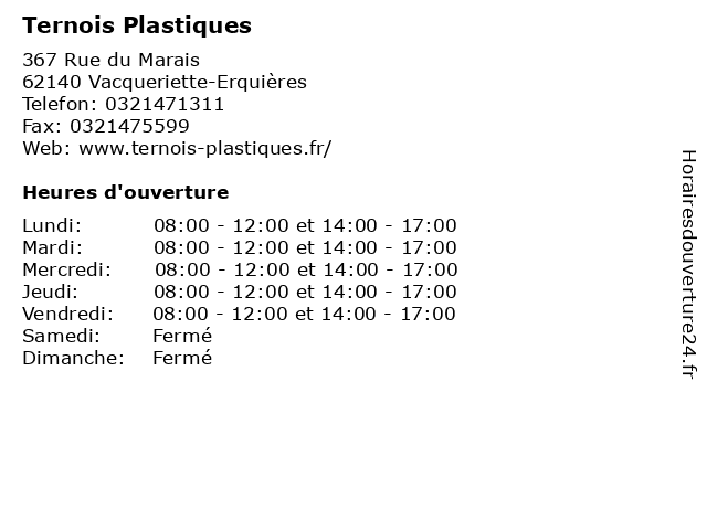 | Vendredi | 08:00-12:00 et 14:00-17:00 |